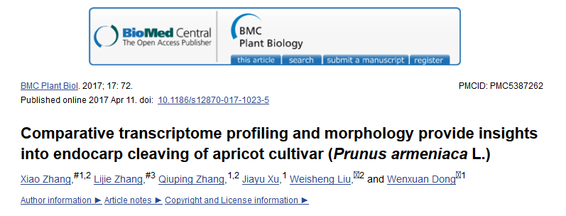 07月19 【成功案例】比較轉(zhuǎn)錄組分析和形態(tài)學(xué)對杏品種(Prunus armeniaca L.)的內(nèi)果皮發(fā)育缺陷的研究