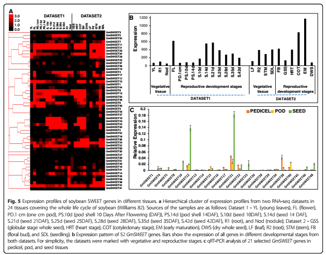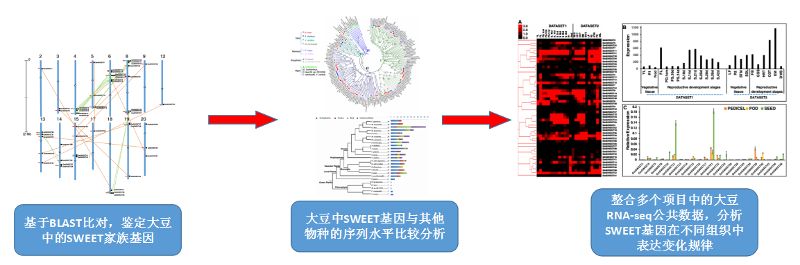 大豆研究套餐: 整個(gè)多個(gè)大豆RNA-seq公共數(shù)據(jù),分析SWEET基因家族在大豆生殖組織與營(yíng)養(yǎng)組織間表達(dá)變化規(guī)律