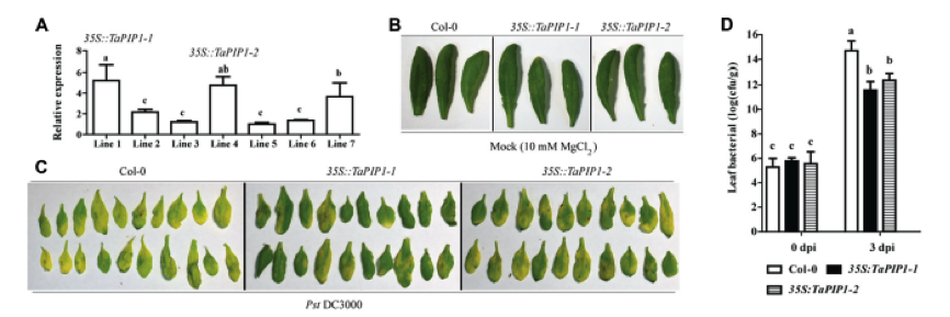 7.TaPIP1增加了擬南芥對(duì)PstDC3000感染的抗性